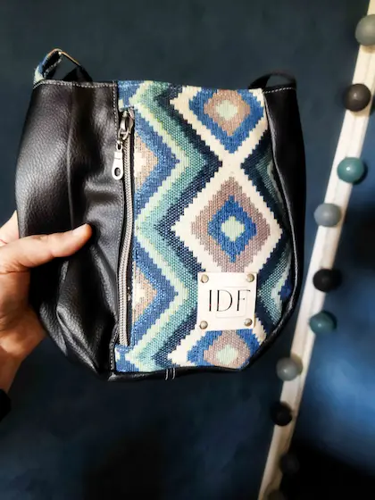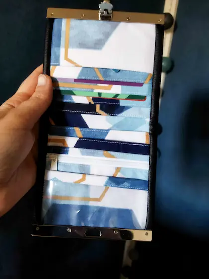 Les réseaux sociaux ont aussi du bon, la preuve avec cette artiste que j’ai découvert sur Instagram. Michèle est passionnée par les sacs et elle a décidé de lancer sa marque: Idée Folle Créative. Des sacs à mains, des sacoches, des bananes ou encore des portes cartes. Michèle est minutieuse et à l’écoute. Dans le cadre de notre collaboration, j’ai eu le plaisir de recevoir un lot sur-mesure. J’ai demandé une sacoche bleu avec des légers motifs dans le style abstrait de couleur bleu. Elle a tout de suite compris, quand elle m’a montré le patron de motif j’ai validé direct ! Sauf qu’elle a fait bien plus que la sacoche demandé, elle m’a gâtée 🙂
