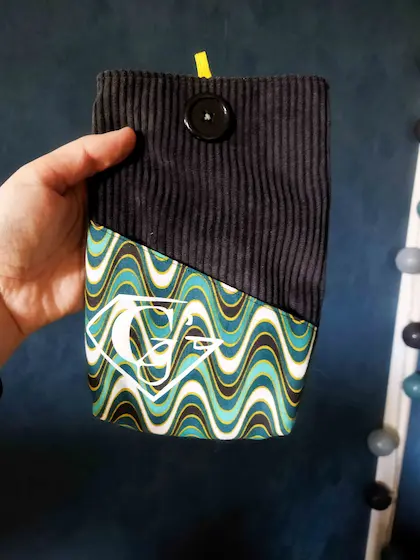 Comme je le disais, j’ai reçu un beau colis inattendus, avec en cadeau une pochette à livre et le porte-clé floqué de mon logo, c’est attention particulière qu’elle m’a porté et j’ai apprécié ce geste. Au quotidien son porte-carte et sa sacoche m’accompagne. Un an après et tout tiens, la fermeture éclaire toujours intacte, la partie aimantée qui ferme la sacoche également. Bref tout est encore parfait! Et j’adore ce style qui me ressemble parfaitement. Si tu aimes les créations fait mains et que tu recherche un style de sac particulier, je t’invite vivement à prendre contacte avec Michèle. Que tu aimes les motifs ou non, les couleurs ou les choses sombres, tu peux avoir la certitude que tu ne seras pas déçue c’est certains !