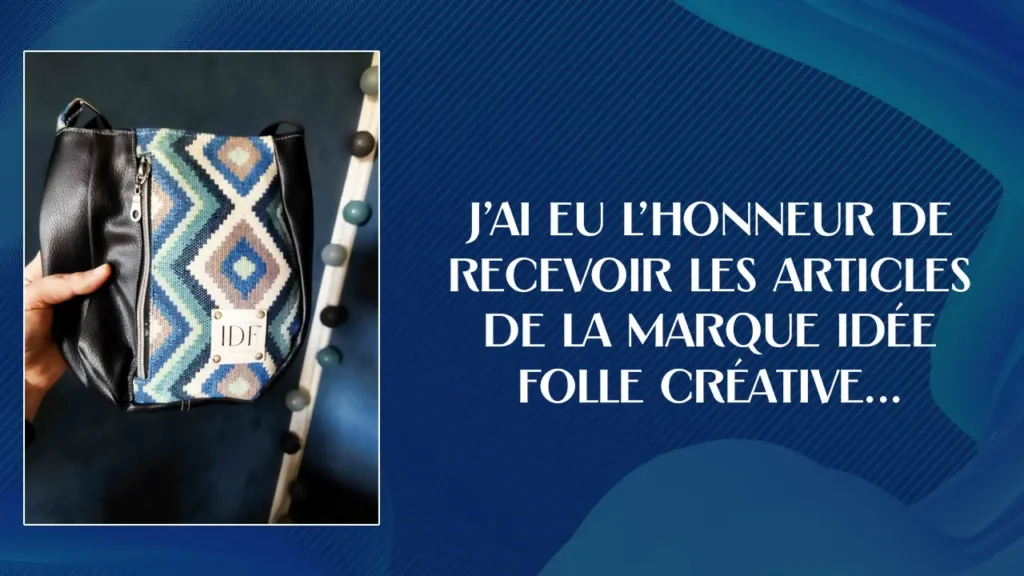 Michèle fait des sacs incroyable Les réseaux sociaux ont aussi du bon, la preuve avec cette artiste que j’ai découvert sur Instagram. Michèle est passionnée par les sacs et elle a décidé de lancer sa marque: Idée Folle Créative. Des sacs à mains, des sacoches, des bananes ou encore des portes cartes. Michèle est minutieuse et à l’écoute. Dans le cadre de notre collaboration, j’ai eu le plaisir de recevoir un lot sur-mesure. J’ai demandé une sacoche bleu avec des légers motifs dans le style abstrait de couleur bleu. Elle a tout de suite compris, quand elle m’a montré le patron de motif j’ai validé direct ! Sauf qu’elle a fait bien plus que la sacoche demandé, elle m’a gâtée 🙂 Pour voir ou revoir son portrait Je te laisse découvrir son portrait et son univers dès maintenant 🙂 Découvre vite son portrait. Mon avis sur les créations de michèle Comme je le disais, j’ai reçu un beau colis inattendus, avec en cadeau une pochette à livre et le porte-clé floqué de mon logo, c’est attention particulière qu’elle m’a porté et j’ai apprécié ce geste. Au quotidien son porte-carte et sa sacoche m’accompagne. Un an après et tout tiens, la fermeture éclaire toujours intacte, la partie aimantée qui ferme la sacoche également. Bref tout est encore parfait! Et j’adore ce style qui me ressemble parfaitement. Si tu aimes les créations fait mains et que tu recherche un style de sac particulier, je t’invite vivement à prendre contacte avec Michèle. Que tu aimes les motifs ou non, les couleurs ou les choses sombres, tu peux avoir la certitude que tu ne seras pas déçue c’est certains !